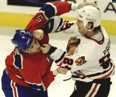 Hockey and fighting were like peas and carrots. Or my buddy Tom and V.D. Slapshot changed my life forever. No movie could really stand up to it. It was the perfect hockey movie. Perfectly cast, perfectly written, filmed and choreographed (the striptease). What a sport. Considering that I was raised a begrudged fighter (i had to fight to survive), it was ironic that I never threw a meaningful punch in hockey. I never had to. I always had a goon on my team to do it for me. I say goon with all the respect and admiration one could imagine. It was like being friends with a football player in high school or being a “Made Man” in the mafia. I was untouchable. Sure I took a couple of shots and had no problem getting in a guys face because I knew within seconds guys like Eric Burke or Dan Quinn would be jumping over me to get to them.