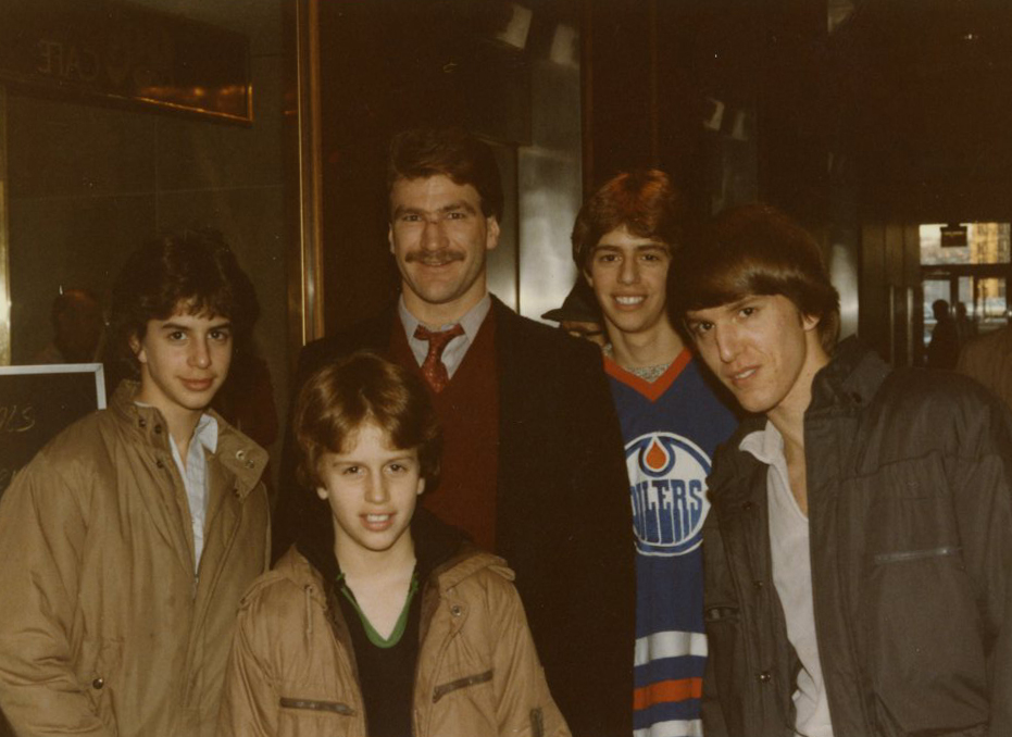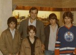 I don’t have time to verify dates, but here’s the story in a nutshell.  Rick Chartraw (old-time fans will remember him as a badass/warrior with a couple of rings I think) somehow arranged to get me and my family to meet the Edmonton Oilers in 1984 as the faced the Penguins.